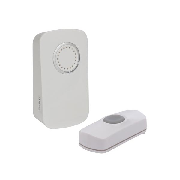 Campanello via radio codificato composto da un'unità ricevente da collocare all'interno dell'abitazione e da un'unità trasmittente con grado di protezione IP44. Non necessita di alcun collegamento fisico tra le due unità in quanto lavora via radio fino ad una distanza (tra RX e TX) di circa 150 metri. Alimentazione a batterie, 32 suonerie selezionabili. |