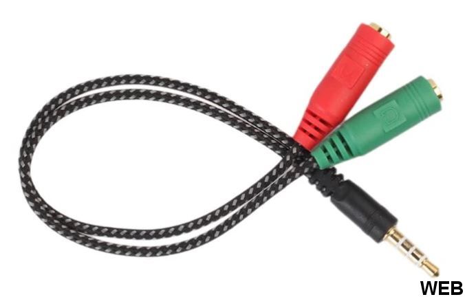 Cavo per convertire un ingresso Jack 4 poli in ingressi separati per cuffia e microfono.