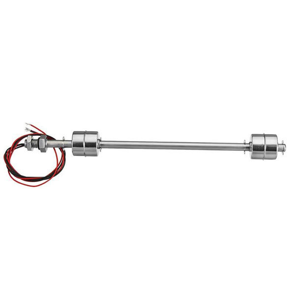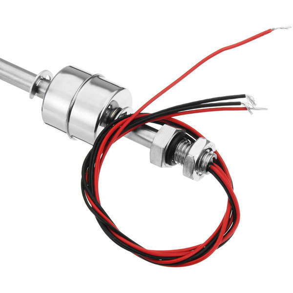 Realizzato in acciaio inox e dotato di due galleggianti, uno per il livello minimo e uno per il livello massimo, questo interruttore a galleggiante viene utilizzato per rilevare il livello di un liquido all'interno di un serbatoio e può attivare una pompa, una spia, un allarme o altro dispositivo. Dispone di quattro fili, due per ogni galleggiante.