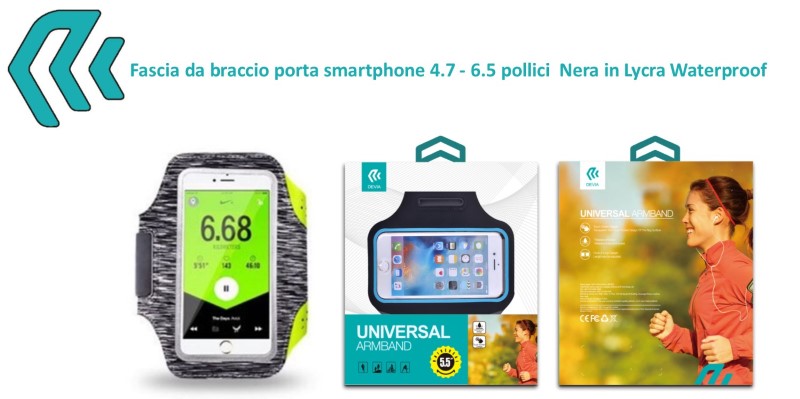 Fascia da braccio porta smartphone 4.7 - 6.5 pollici Nera
