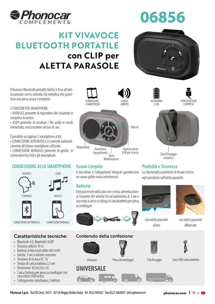 Il kit può essere utilizzato al massimo del volume ha un’autonomia di 3 ore e una volta scarico si collega al caricabatteria per presa