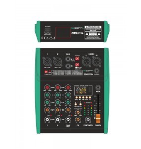 Mixer compatto con lettore mp3 integrato, connettività bluetooth e scheda audio.
