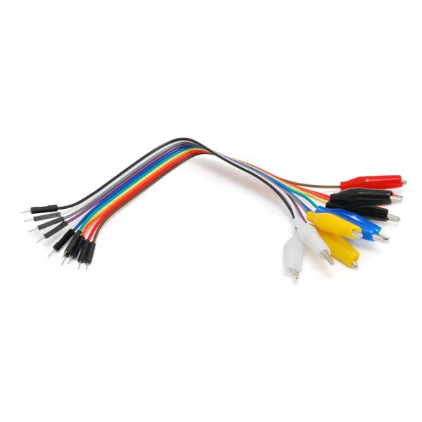 Piattina di 10 cavetti lunghi 20 cm intestati ai capi con connettore maschio a 1 polo da un lato e coccodrillo dall'altro. Ideale per essere impiegato con le piastre sperimentali.