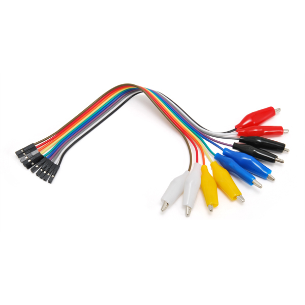 Piattina di 10 cavetti lunghi 20 cm intestati ai capi con connettore maschio a 1 polo da un lato e coccodrillo dall'altro. Ideale per essere impiegato con le piastre sperimentali.