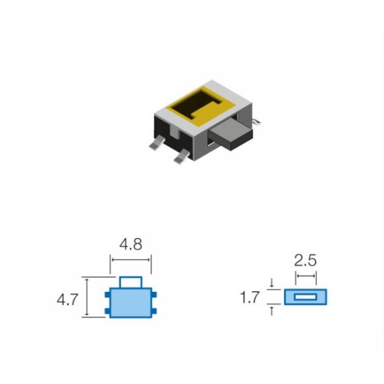 Tact Switchs laterale SMD 4.8 x 4.8mm, altezza totale 1.7mm