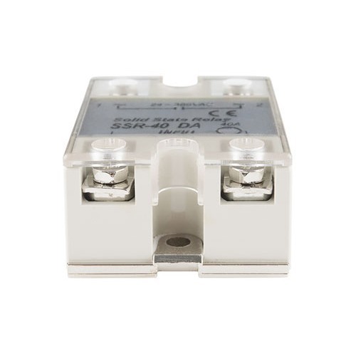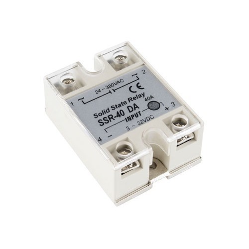Relè allo stato solido a singolo contatto, isolato otticamente, dotato di protezione snubber, TTL e CMOS compatibile. Tensione bobina: da 3 a 32 Vdc, corrente di trigger: 7,5 mA / 12 V, portata contatto: da 24 a 380 Vac / 40 A. I relè allo stato solido , rispetto ai relè meccanici hanno diversi vantaggi: possono essere attivati da una tensione molto più bassa e ad una corrente molto inferiore rispetto alla maggior parte relè meccanici. Inoltre, non essendoci contatti mobili, possono essere attivati molto più velocemente e per periodi molto più lunghi. Dimensioni (mm): 63x45x26.
