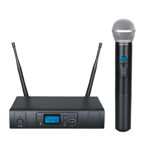 Set radiomicrofono UHF 16 canali. Trasmettitore a gelato. Display retroilluminato blu. Sistema True Diversity con antenne staccabili.