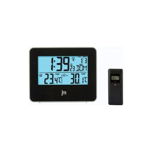 Sveglia digitale radiocontrollata con calendario giorno/mese/ anno/giorno della settimana (disponibile in 7 lingue). Rilevazione della temperatura interna ed esterna tramite sensore in dotazione. Allarme selezionabile per giorni feriali e giorni festivi. Luce elettroluminescente a spegnimento ritardato attivabile con un sensore di movimento posto sulla parte superiore della sveglia.