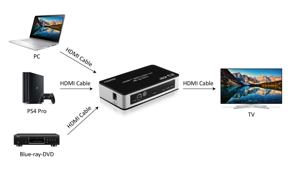 Switch 3x1 HDMI 2.0 18G 4k@60hz HDR, con telecomando IR