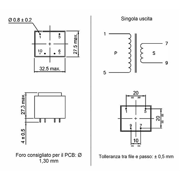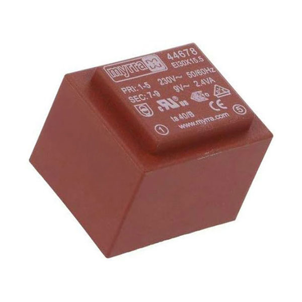 Trasformatore incapsulato da 230 VAC a 9 V , ideale per montaggio su PCB. Compatto, sicuro e affidabile, garantisce isolamento galvanico e resiste fino a 4 kV. Perfetto per alimentatori, controlli elettronici e sistemi embedded.