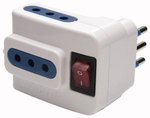 Con spina 10A e tre prese passo 10A con contatto di terra.