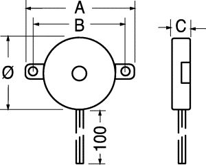 Buzzer piezzoelettrico A = 35mm B=28,5mm C=4,3mm Ø=24mm