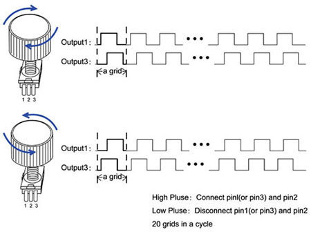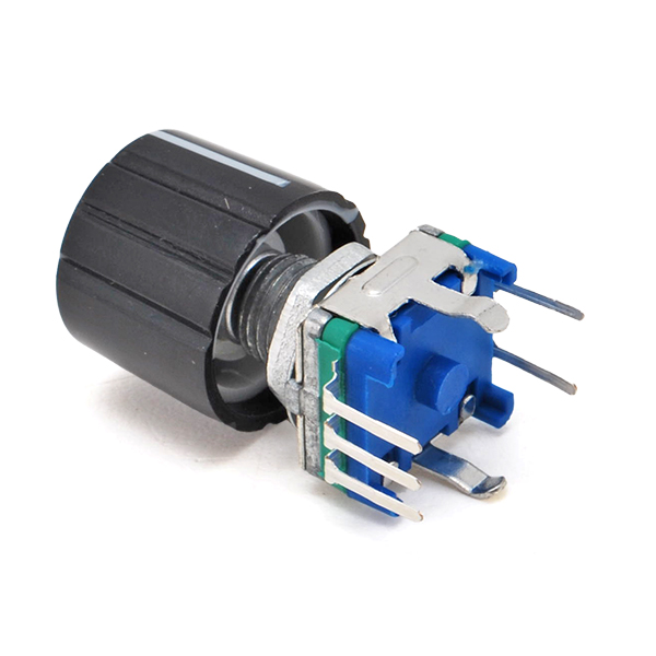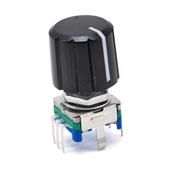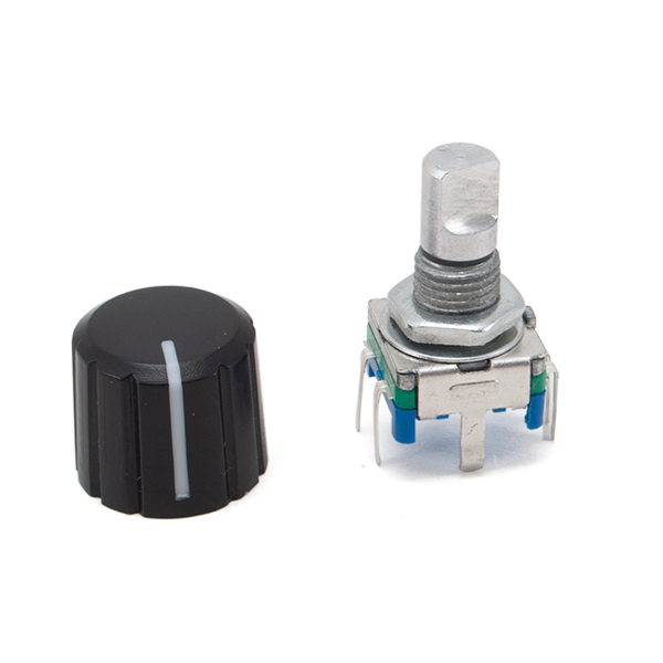 | Encoder rotativo Encoder rotativo 12 mm con manopola a 20 passi/360° (18° a passo). Il segnale di uscita è basato sul codice gray che permette di conoscere in quale direzione l’encoder è stato ruotato. Dispone inoltre di un pulsante n.a. che si attiva quando l’alberino dell’encoder viene premuto verso il basso. Manopola compresa. |