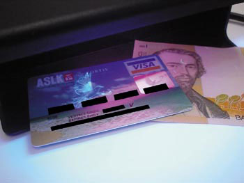 | Provabanconote in grado di rilevare l'autenticità di banconote e carte di credito. Mette in evidenza la presenza di scritte e segni fluorescenti sulla banconota. Utilizza due lampade UV da 6 watt pilotate da un circuito di alimentazione elettronico. Completo di interruttore di alimentazione. |