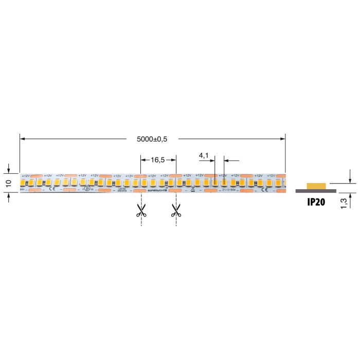 Fornita in bobina da 5mt che contiene 1200 LED SMD separabili ogni 4 LED (1,65cm).