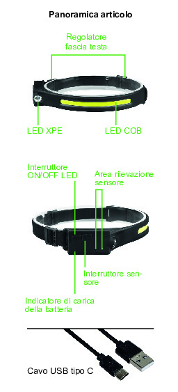 TORCIA FRONTALE MANI LIBERE CON SENSORE |