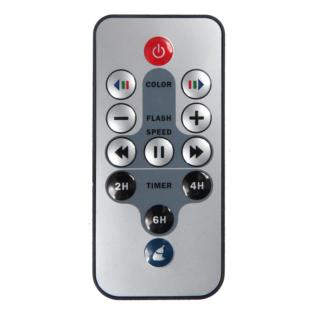 In dotazione troverete il pratico telecomando con temporizzatore che permette, di scegliere il colore del laser, di selezionare la velocità di movimento e la frequenza di lampeggio, oltre che di settare il tempo per il quale l'apparecchio dovrà operare prima di spegnersi, evitando inutili consumi e prolungando notevolmente la vita dei laser. Il timer è settabile su 2, 4, 6 ore di funzionamento.