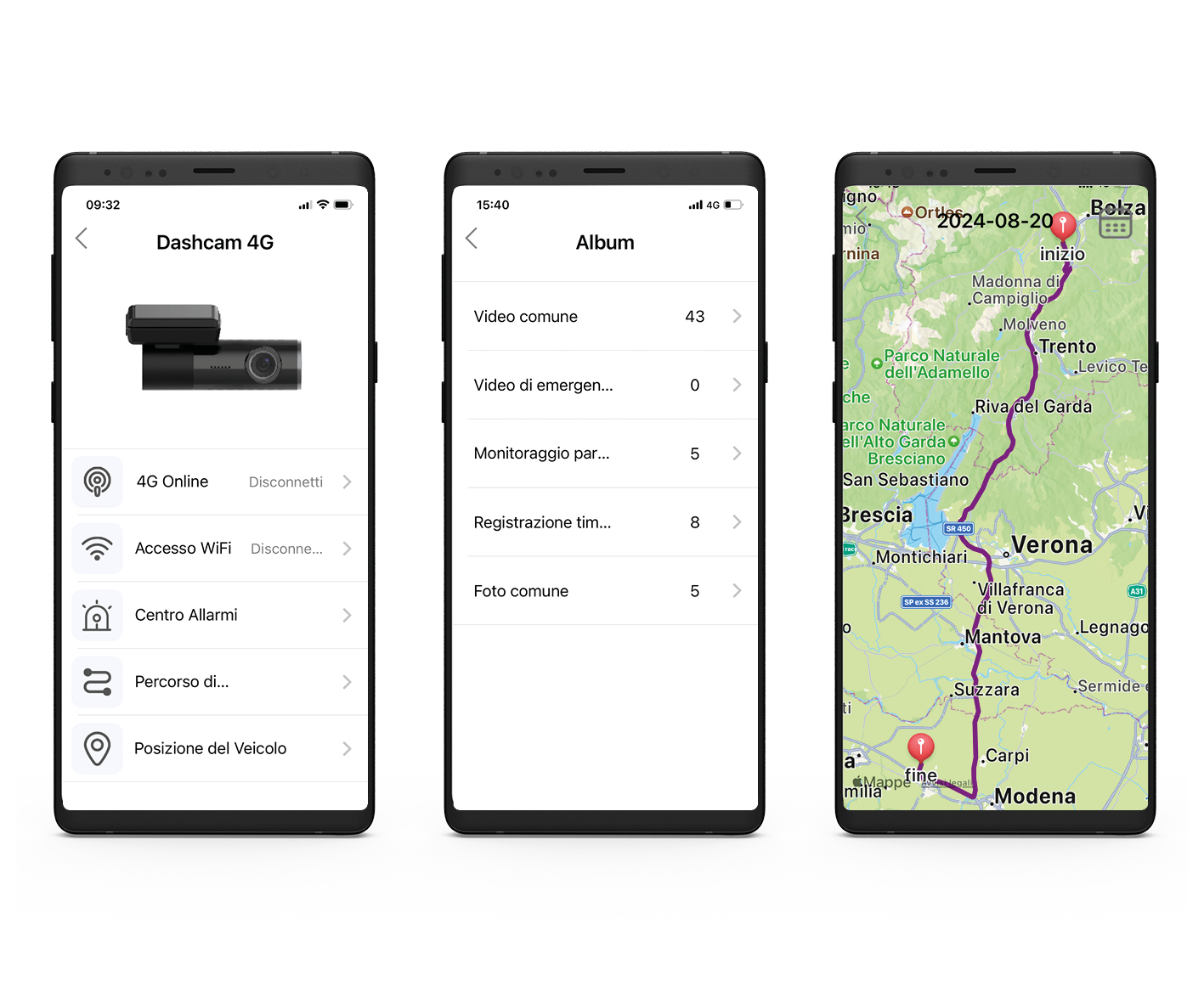 Dashcam con funzione DVR avanzata e App dedicata per la visualizzazione delle riprese in tempo reale, da remoto, direttamente sullo smartphone.