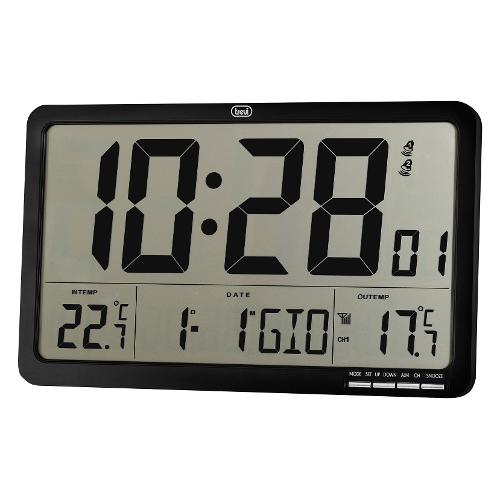 L'Orologio Digitale da Parete Radiocontrollato Trevi OM 3560 RC è un accessorio dal design moderno, capace di offrire un gran numero di informazioni orarie e meteorologiche in maniera sempre chiara e visibile. OM 3560 RC ha un grande display LCD per assicurare una visione sempre ottimale anche da elevate distanze o differenti angolazioni. Su di esso potrai comodamente visualizzare informazioni in merito ad orario, calendario e temperatura interna ed esterna, sia in °C che in °F, grazie al sensore esterno senza fili. È inoltre possibile programmare una sveglia, che si attiverà all’ora da te preferita con suoneria. L’orologio digitale di Trevi può essere installato a parete oppure utilizzato come accessorio su un tavolo o un mobile