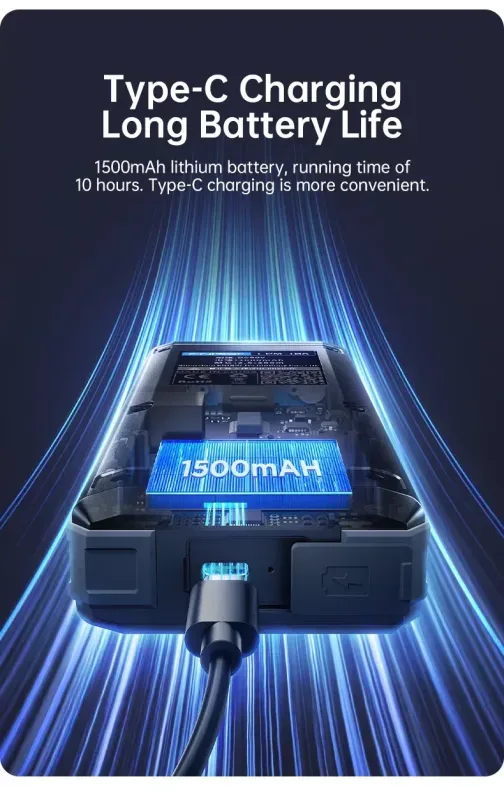 9 - Il tester LPM10A integra una batteria agli ioni di litio da 1500 mAh, che garantisce fino a 10 ore di utilizzo continuo.